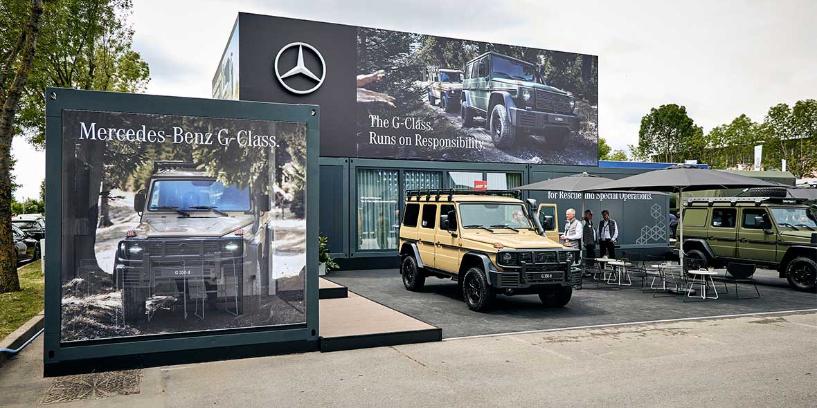 Die G-Klasse auf der Eurosatory in Paris.