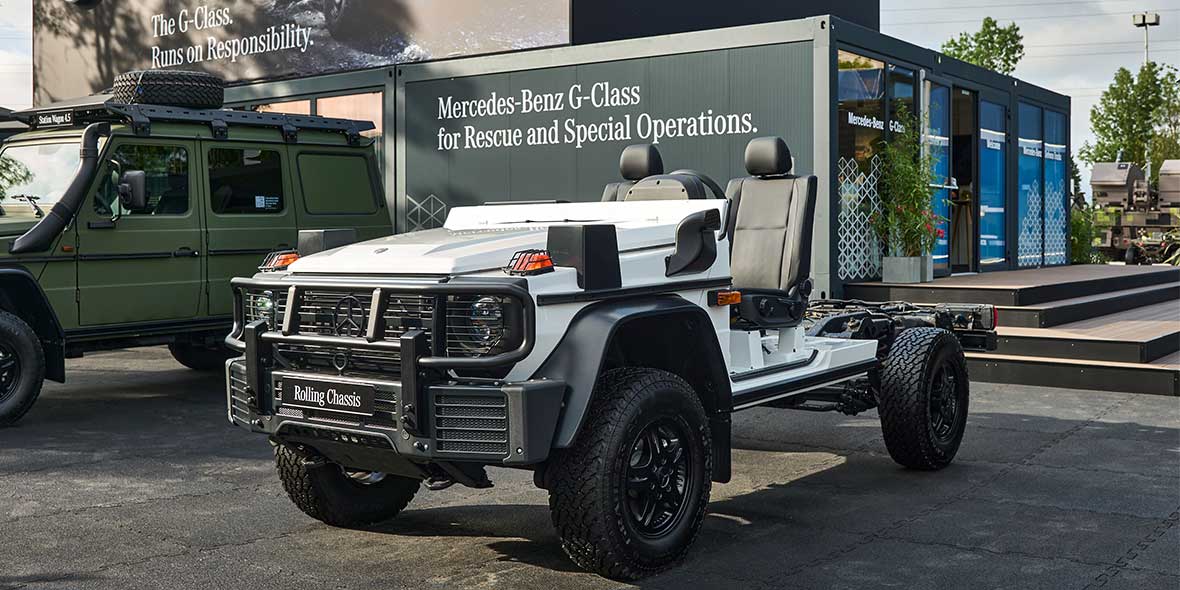 Auf der Eurosatory 2026 präsentiert Mercedes-Benz die G-Klasse als leistungsfähige Lösung für sicherheitsrelevante Einsatzszenarien. Konzipiert für Einsatzkräfte mit den Aufgaben Schützen, Retten und Sichern, vereint das Fahrzeug hohe Geländegängigkeit, Robustheit und spezialisierte Ausstattung für den Ernstfall. Vom 15.–19. Juni erhalten Besucherinnen und Besucher der Messe in Paris einen fundierten Einblick in aktuelle Exponate, deren Leistungsdaten sowie Sonderausstattungen. Mercedes-Benz Expertinnen und Experten erläutern praxisnah, wie die G-Klasse den Anforderungen komplexer Einsatzlagen gerecht wird.